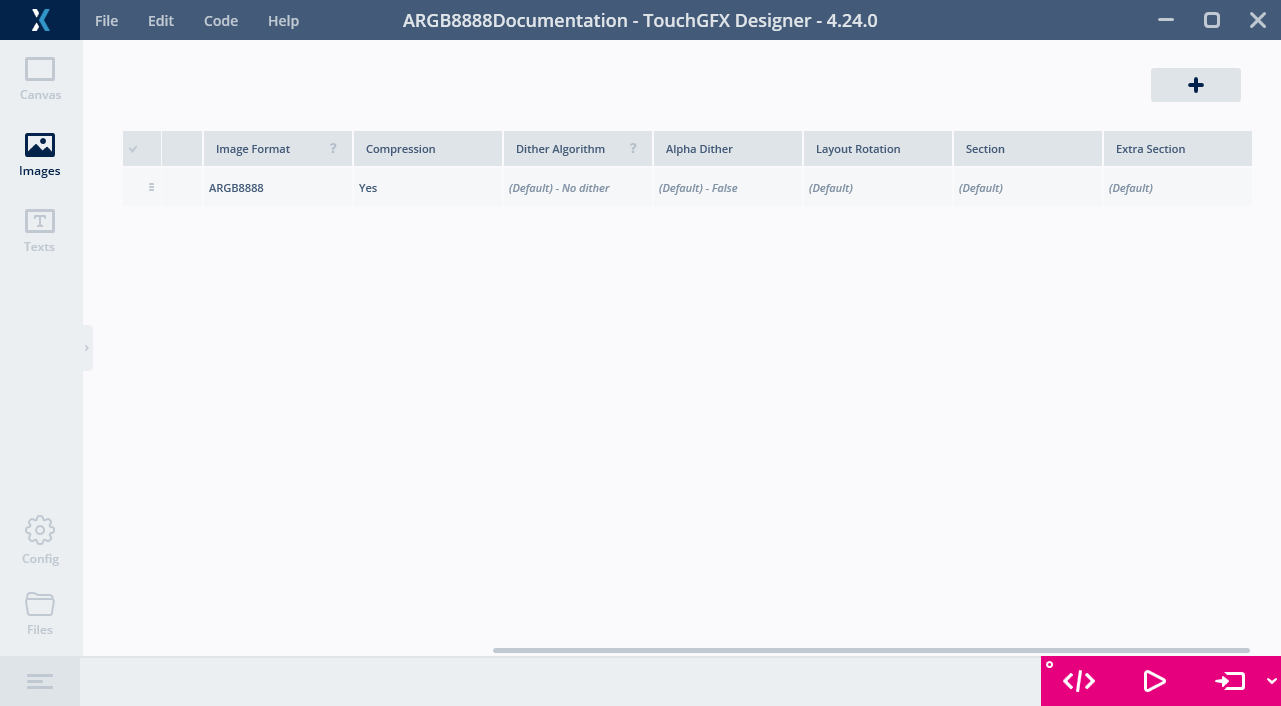 從4.22版本開始,TouchGFX支援使用圖像壓縮。 從4.22版本到4.23版本的支援僅限於L8圖像壓縮。 從4.24版本開始支援壓縮RGB565、RGB888和ARGB8888圖像格式。