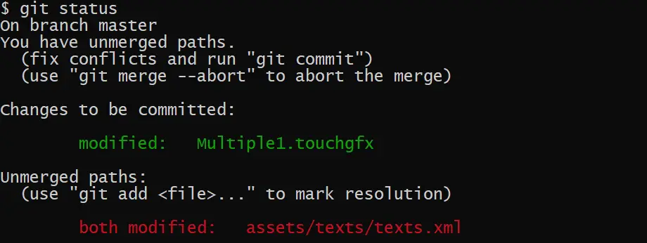 您可利用以下指令,讓Multiple.touchgfx檔案回到開始合併之前的狀態:
