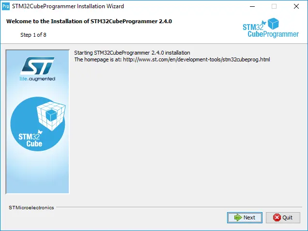 從如下目錄下載STM32CubeProgrammer之後 STM32CubeProgrammer download location, 解壓檔.zip 並.exe安裝。 然後按照說明完成安裝。